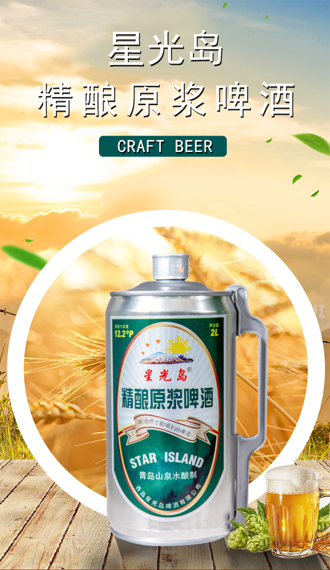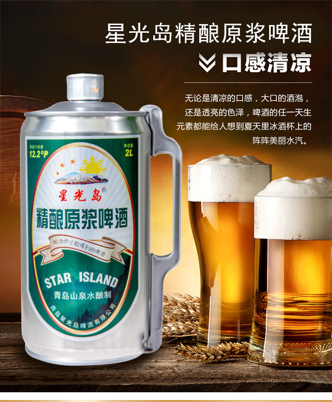 產(chǎn)品名稱:星光島精釀原漿啤酒【12.2°2L】