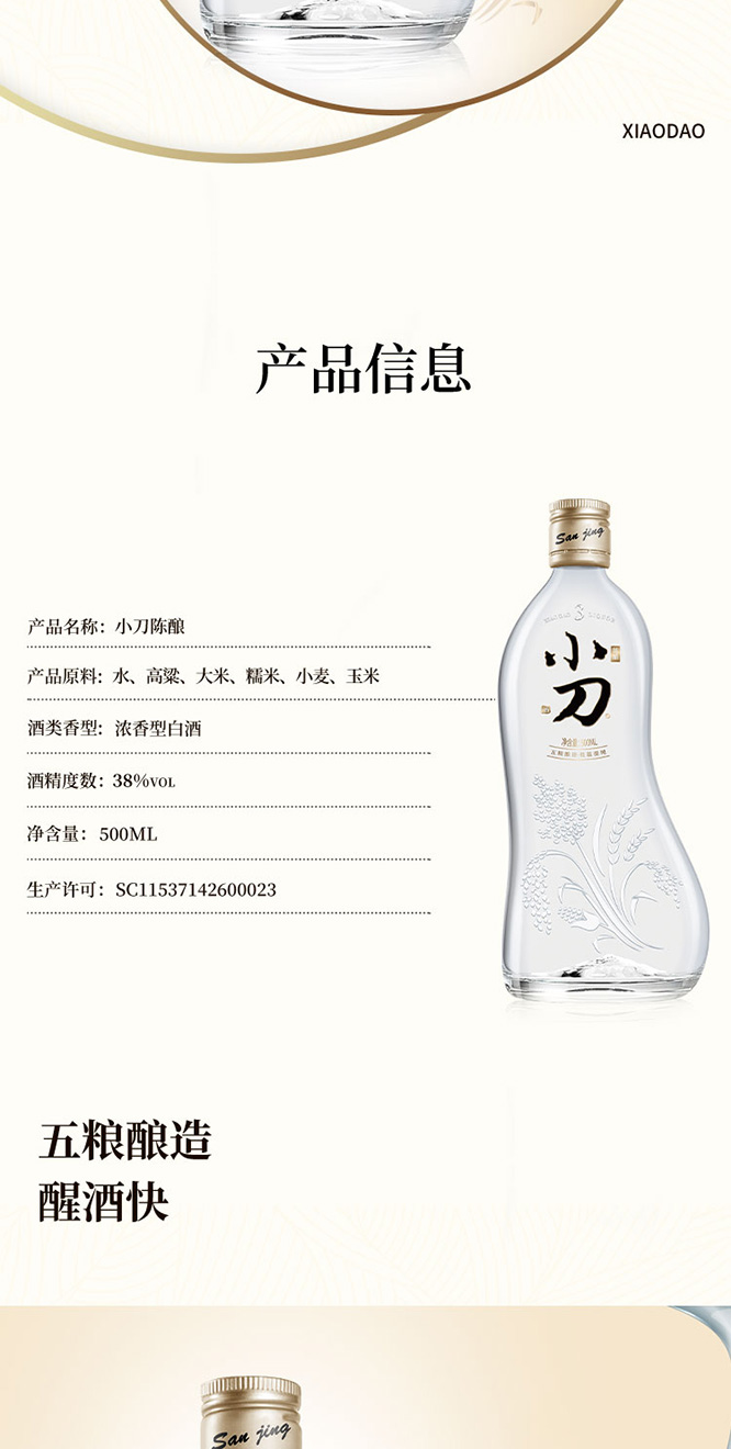產(chǎn)品名:小刀酒陳釀38°500ml濃香型白酒