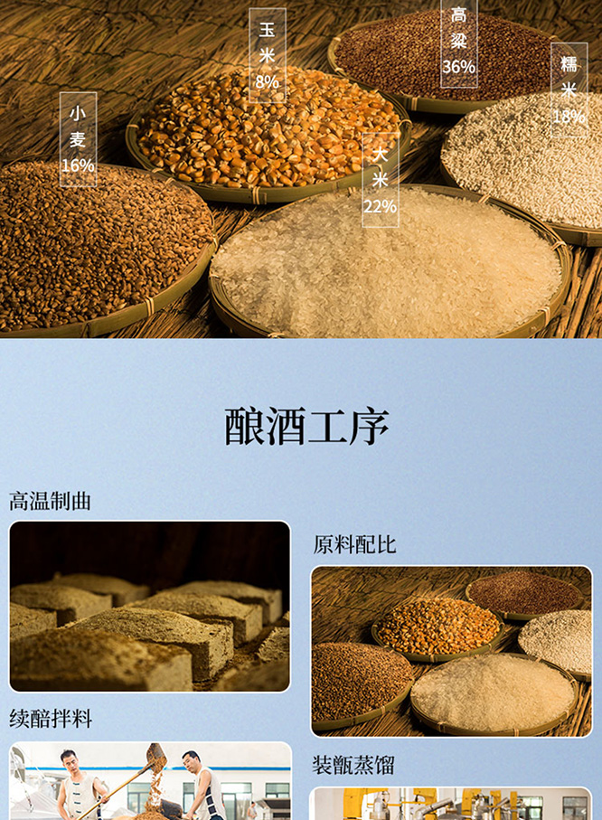 原料:水、高粱、大米、糯米、小麥、玉米等