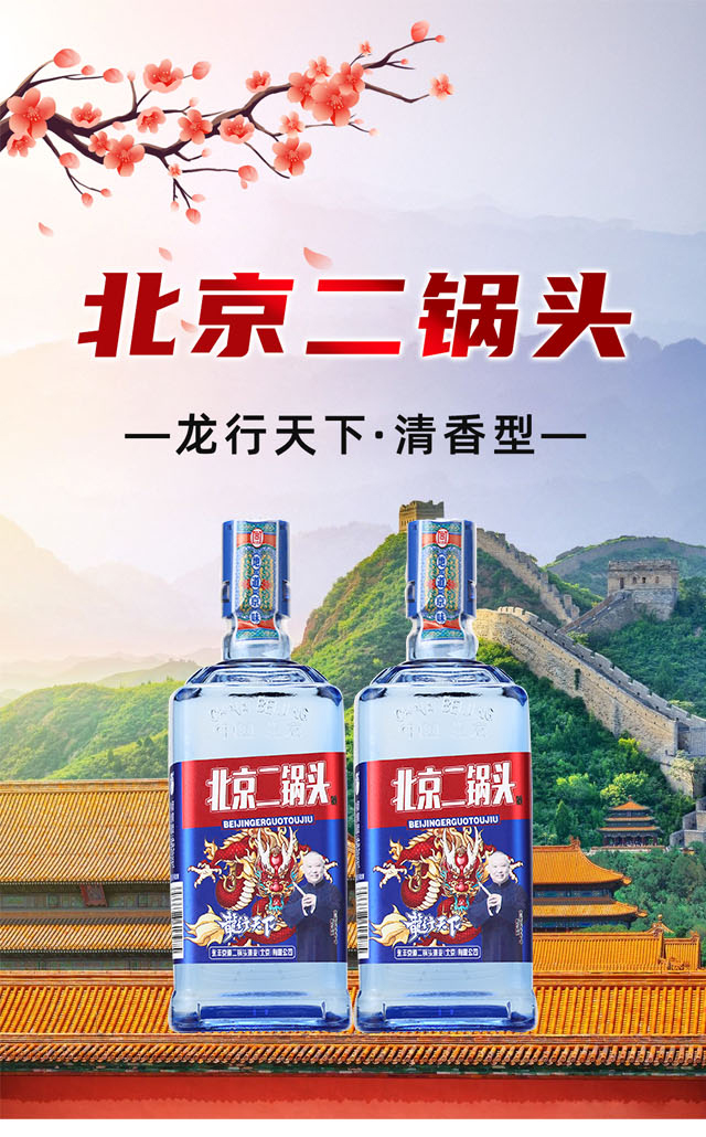 【產(chǎn)品名稱】京道北京二鍋頭酒龍行天下(藍(lán)瓶)清香型【42°500ml】