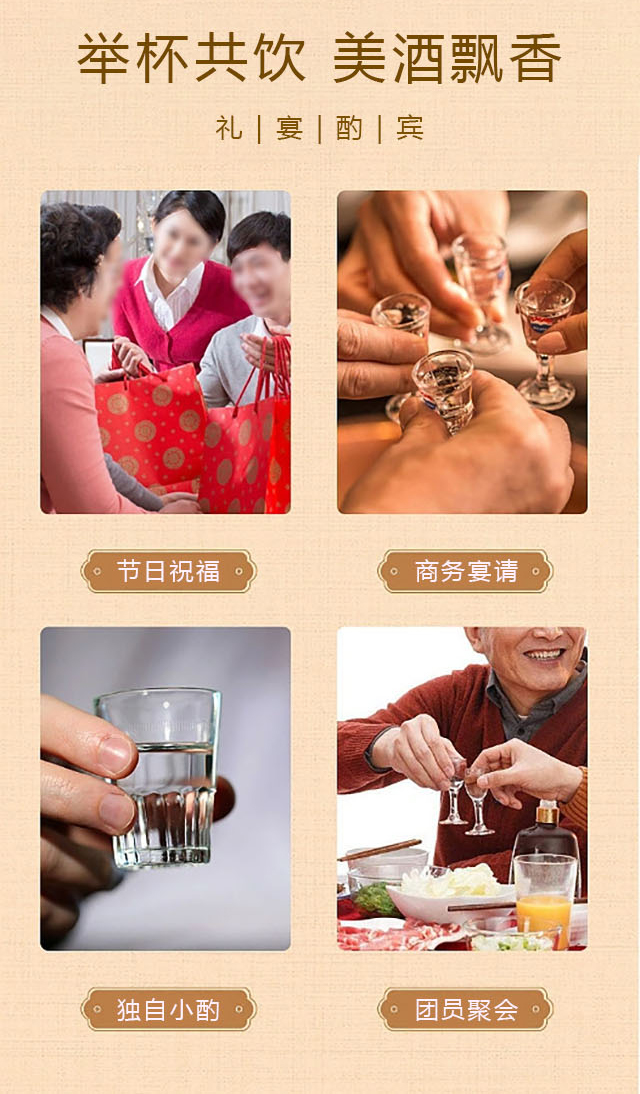 適飲場合:家庭聚會、自斟自飲、禮節(jié)拜訪、商務宴請、收藏等