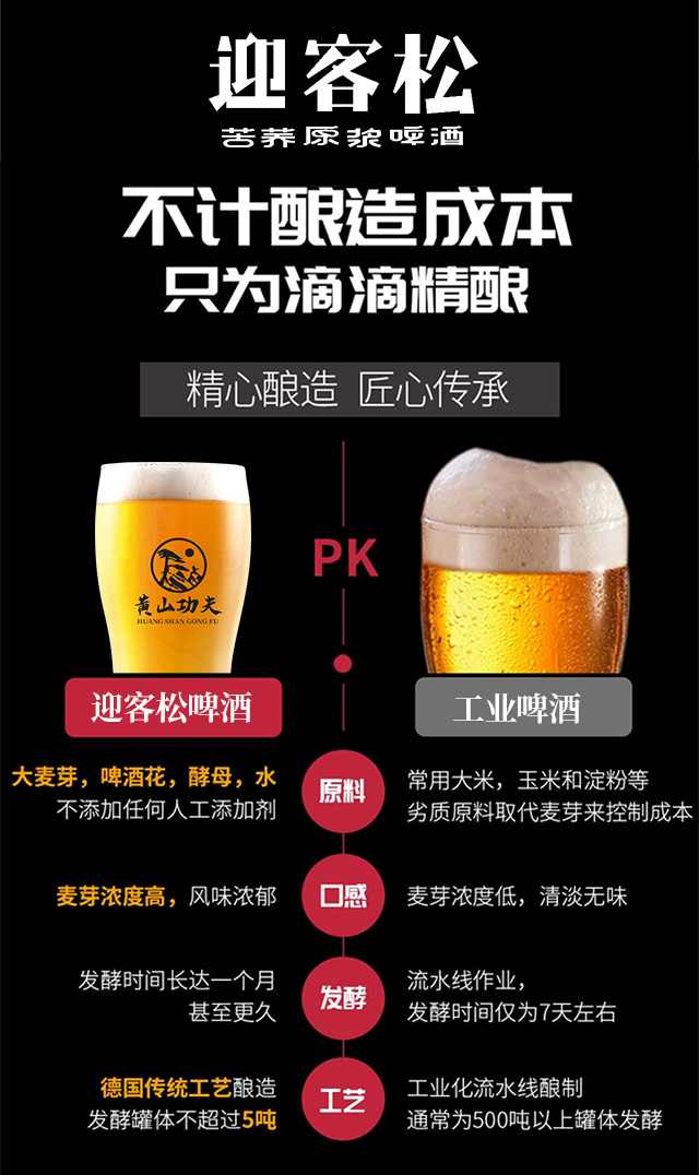 產(chǎn)品名:黃山功夫迎客松蕎麥原漿啤酒【8°245ml】