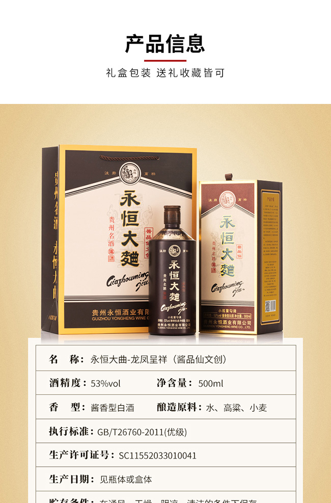 品名:永恒大曲酒龍鳳呈祥 醬香型【53°500ml】