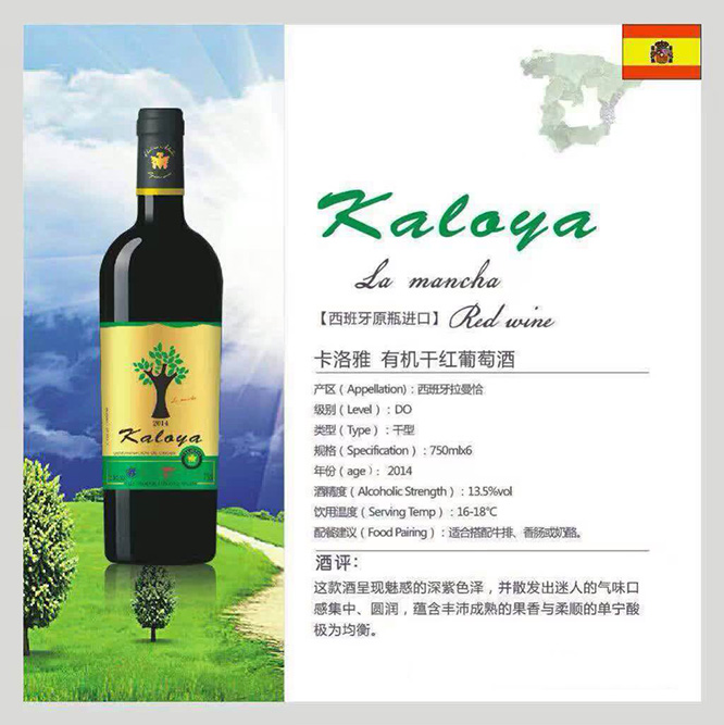 產(chǎn)品名:卡洛雅有機干紅葡萄酒13.5°750ml