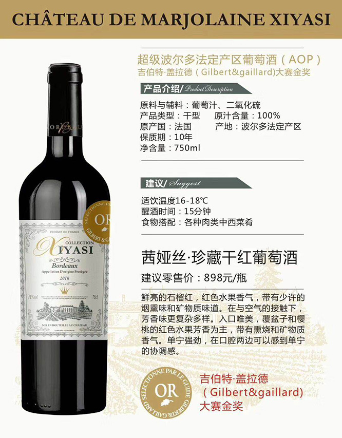 產(chǎn)品名:茜婭絲珍藏干紅葡萄酒13°750ml