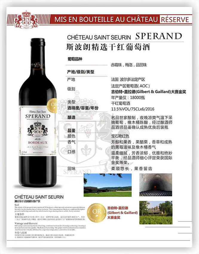 產品名:斯波朗精選干紅葡萄酒13.5°750ml