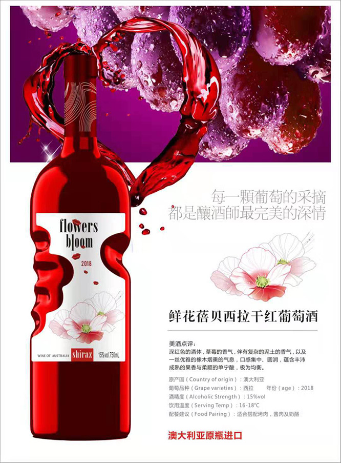 產(chǎn)品名:鮮花蓓貝西拉干紅葡萄酒15°750ml