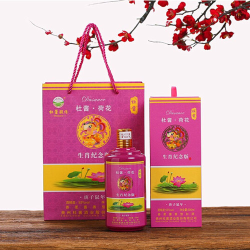 杜醬荷花酒-鼠年生肖紀(jì)念版53度醬香型白酒500mlX2瓶禮盒裝:350元/盒