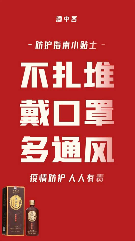 溫馨貼士:少出門,戴口罩,不聚集,勤洗手。疫情防護,人人有責。(圖文來源:酒中客官微)