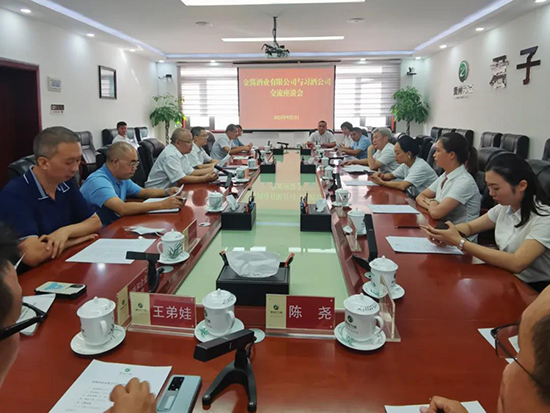隨后,習(xí)酒公司黨委副書(shū)記、總經(jīng)理汪地強(qiáng)及公司黨委委員、總工程師胡峰帶領(lǐng)相關(guān)部門(mén)領(lǐng)導(dǎo)與金醬酒業(yè)一行召開(kāi)了交流座談會(huì)。雙方就企業(yè)發(fā)展、生產(chǎn)管理、人才培養(yǎng)、文化建設(shè)、品牌發(fā)展、生態(tài)環(huán)境保護(hù)、酒業(yè)發(fā)展規(guī)劃等方面進(jìn)行了交流座談。在與習(xí)酒公司各位領(lǐng)導(dǎo)的交流分享中,我們更加深刻的了解到酒業(yè)的發(fā)展、企業(yè)文化的建設(shè)、企業(yè)的經(jīng)營(yíng)管理、生態(tài)環(huán)境發(fā)展規(guī)劃等方面的先進(jìn)理念。
