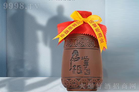 個性陶瓶包裝,彩色布包裹瓶蓋,綢帶捆扎,與古樸陶壇瓶體相得益彰,賣點突出;在終端陳設(shè)中十分搶眼,情趣橫生。書法“店掌柜”酒標,瀟灑飄逸,灑落,有放浪無羈、自由奔放之既視感。