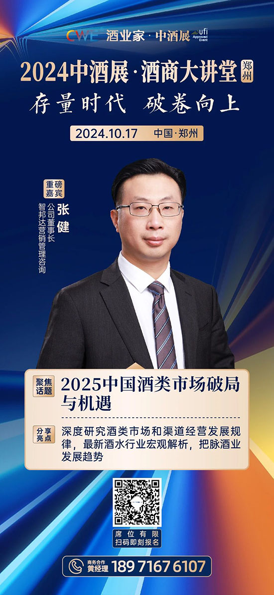 同時,為了更好的助力行業(yè)人看清趨勢,找準(zhǔn)方向,服務(wù)多家名酒廠家,且對渠道經(jīng)營的發(fā)展規(guī)律有深度研究的智邦達(dá)營銷管理咨詢公司董事長張健,將帶來酒水行業(yè)宏觀解析,從全局分析下一步酒業(yè)市場發(fā)展趨勢。